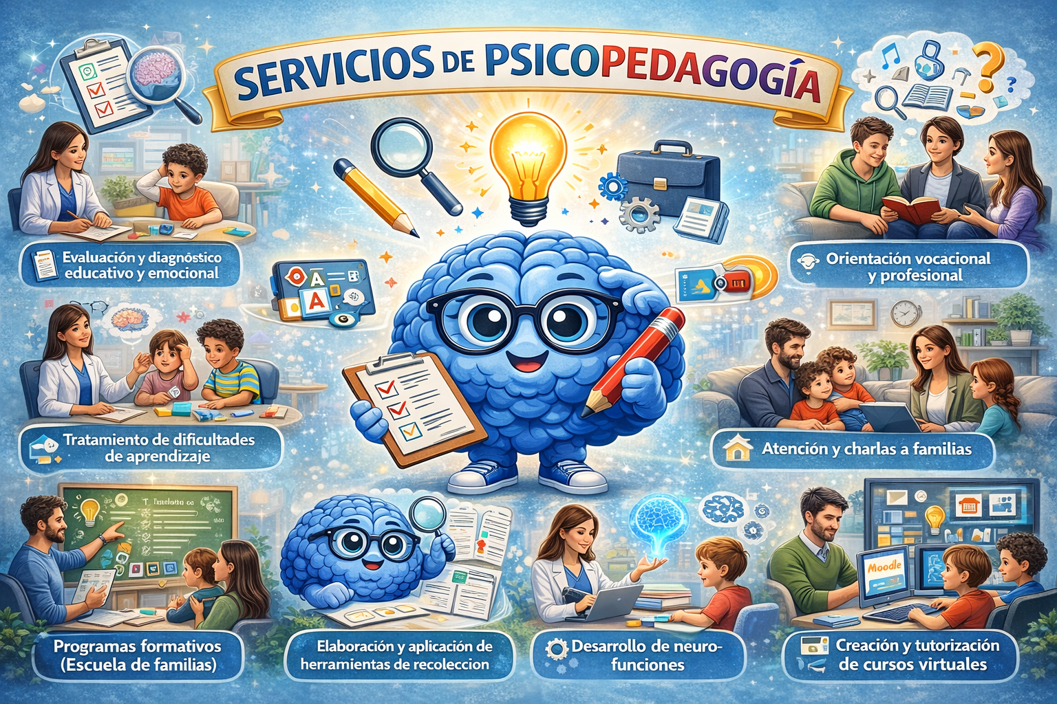 - Evaluación y diagnóstico educativo y emocional: Identificación de necesidades y áreas de mejora en aprendizaje y desarrollo emocional.